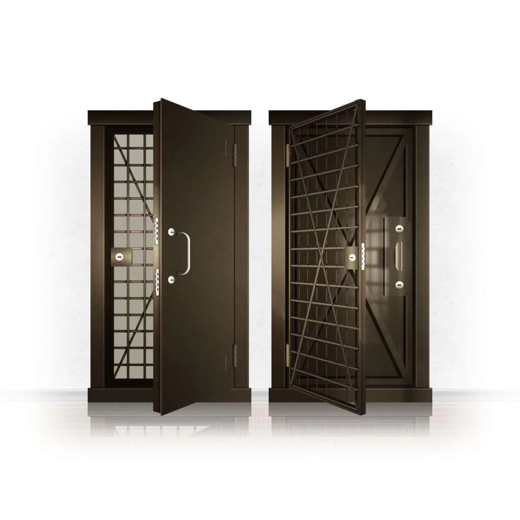 Металлические двери КХО и КХН представляют собой входные блоки, обладающие высоким уровнем взломостойкости и состоят из трех основных элементов: усиленного каркаса, сплошного металлического полотна и решетчатой двери. Дверной блок изготавливается из стального уголка 100*100 мм. Места крепления блока к стене цементируются и закрываются стальными наличниками шириной 40 мм. Крепеж заходит вглубь стены на 80 мм. В конструкции внешней створки монтируются ребра жесткости, для обшивки используется сталь толщиной не менее 3 мм. Внутренняя решетка изготавливается из прутка диаметром 16 мм. Размер ячеек решетки должен составлять не более 15 на 15 см. В точках пересечения прутья надежно приваривают друг к другу. В КХО и КХН необходимо поддерживать определенную температуру и влажность. Для этого внутреннее пространство глухой двери заполняется теплоизоляционным материалом, а по периметру двери приклеивается уплотнитель. Такие двери оборудуются замками с повышенным уровнем взломостойкости. Специализированные двери КХО и КХН в Туймазах могут быть оснащены сигнализацией, в конструкции могут быть проушины для навесного замка и элементами для опечатывания. Если идет речь о двери в комнату хранения оружия, в створке оборудуется окно для выдачи оружия и спец. средств, которое накрывается стальной дверцей.
