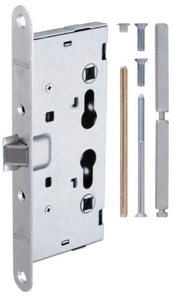 Замок разработан и изготовлен в соответствии с требованиями противопожарной безопасности. Функция ANTI-PANIC- обеспечивает свободный выход, закрытая на ключ дверь открывается нажатием ручки изнутри помещения. Универсальная защелка. Отверстия под стяжные винты, подпружиненное отверстие под квадрат для лучшей фиксации ручки. Повышенный ресурс работы: 600 000 циклов открывания/закрывания. Межосевое расстояние: 72 мм. Бэксет: 65 мм. Вылет ригеля: 22 мм. Ширина лицевой планки: 24 мм. В комплекте крепеж, винт для евроцилиндра 75 мм, раздельный квадрать 135 мм.Универсальная защелка предусматривает возможность установки для правых и левых дверей, открывающихся как внутрь, так и наружу. Стальной оцинкованный корпус, лицевая планка из нержавеющей стали. На корпусе замка расположены отверстия под стяжные винты. Подпружиненное отверстие под квадрат для лучшей фиксации ручки. Повышенный ресурс работы: 600 000 циклов открывания/закрывания. Межосевое расстояние: 72 мм. Бэксет: 65 мм. Вылет ригеля: 22 мм. Ширина лицевой планки: 24 мм. В комплекте крепеж, винт для евроцилиндра 75 мм, раздельный квадрат 135 мм.. Рекомендуется установка замка вместе с ручками для противопожарных дверей серии DH-0433 (с пружиной), DH-0431 и цилиндровым механизмом Fuaro. Для установки на двери от 60 до 120 мм. Размер отверстия под ручку 9 мм.