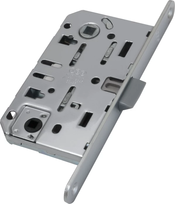 Замок врезной бесшумный B01102.50.34 с защелкой WC серии MEDIANA EVOLUTION предназначен для установки в межкомнатные двери. Подходит для левых и правых дверей. Более тихий замок благодаря новой конструкции и новым внутренним компонентам. Бесшумная пластиковая защелка с двойным наклоном может фиксироваться ключом внутри замка (при перевозке деревянного полотна). Новая защищенная патентом система поворота защелки. Цвет: матовый хром.
