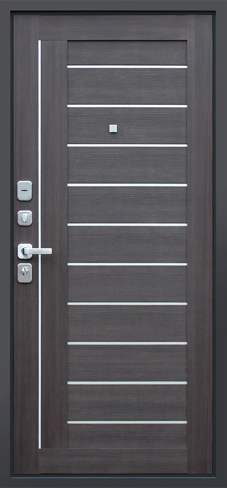 Надежная входная Дверь Дуэт орех рифленый премиум класса по цене 44 759 руб. Большая толщина стали защитит от проникновения в ваш дом, квартиру или коттедж. Используется очень качественная фурнитура: замки, цилиндры, ручки, защелки. Покрытие и отделка двери изготовлено под внимательным контролем производителя. Дверь имеет долгий срок службы и гарантию.