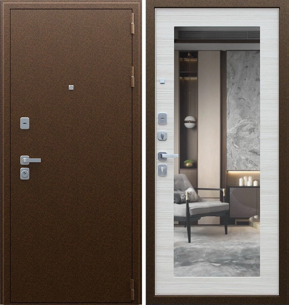 Надежная входная Дверь Спартак с зеркалом Акация Светлая Поперечная премиум класса по цене 36 259 руб. Большая толщина стали защитит от проникновения в ваш дом, квартиру или коттедж. Используется очень качественная фурнитура: замки, цилиндры, ручки, защелки. Покрытие и отделка двери изготовлено под внимательным контролем производителя. Дверь имеет долгий срок службы и гарантию.