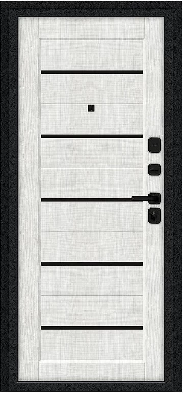 Надежная входная Дверь Браво Борн/SBlack Букле черное/Bianco Melinga премиум класса по цене 31 259 руб. Большая толщина стали защитит от проникновения в ваш дом, квартиру или коттедж. Используется очень качественная фурнитура: замки, цилиндры, ручки, защелки. Покрытие и отделка двери изготовлено под внимательным контролем производителя. Дверь имеет долгий срок службы и гарантию.