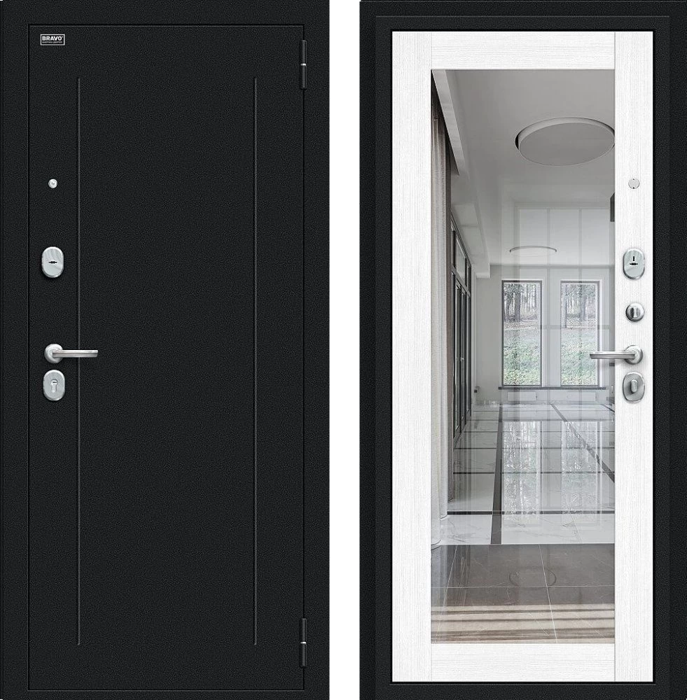Надежная входная Дверь Браво Флэш Букле черное/Snow Melinga премиум класса по цене 32 709 руб. Большая толщина стали защитит от проникновения в ваш дом, квартиру или коттедж. Используется очень качественная фурнитура: замки, цилиндры, ручки, защелки. Покрытие и отделка двери изготовлено под внимательным контролем производителя. Дверь имеет долгий срок службы и гарантию.