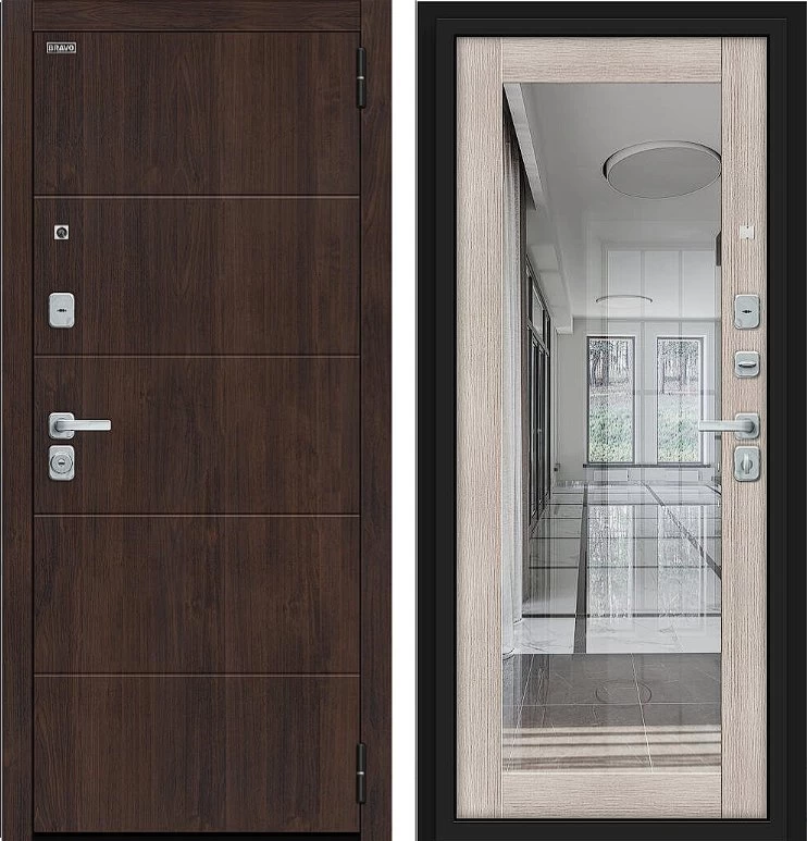 Надежная входная Дверь Браво Флэт/BChrome Almon/Cappuccino Melinga премиум класса по цене 42 159 руб. Большая толщина стали защитит от проникновения в ваш дом, квартиру или коттедж. Используется очень качественная фурнитура: замки, цилиндры, ручки, защелки. Покрытие и отделка двери изготовлено под внимательным контролем производителя. Дверь имеет долгий срок службы и гарантию.