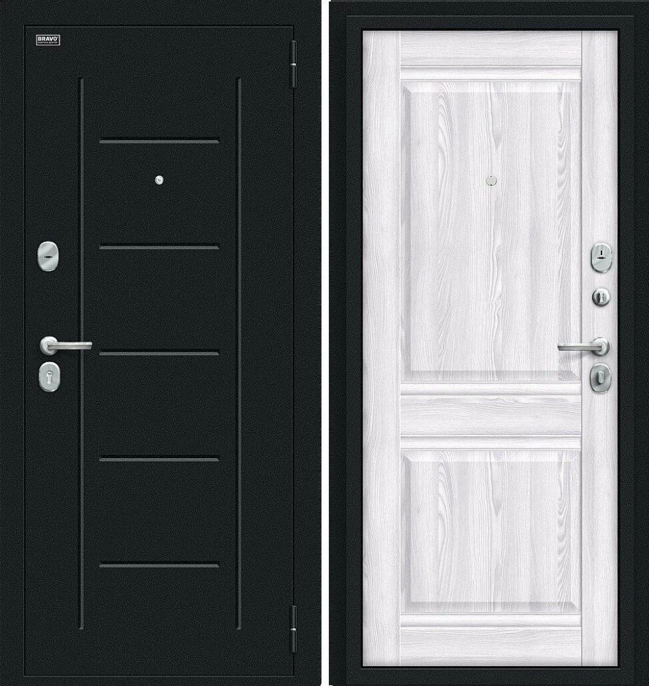 Надежная входная Дверь Браво Некст Kale Букле черное/Riviera Ice премиум класса по цене 35 429 руб. Большая толщина стали защитит от проникновения в ваш дом, квартиру или коттедж. Используется очень качественная фурнитура: замки, цилиндры, ручки, защелки. Покрытие и отделка двери изготовлено под внимательным контролем производителя. Дверь имеет долгий срок службы и гарантию.