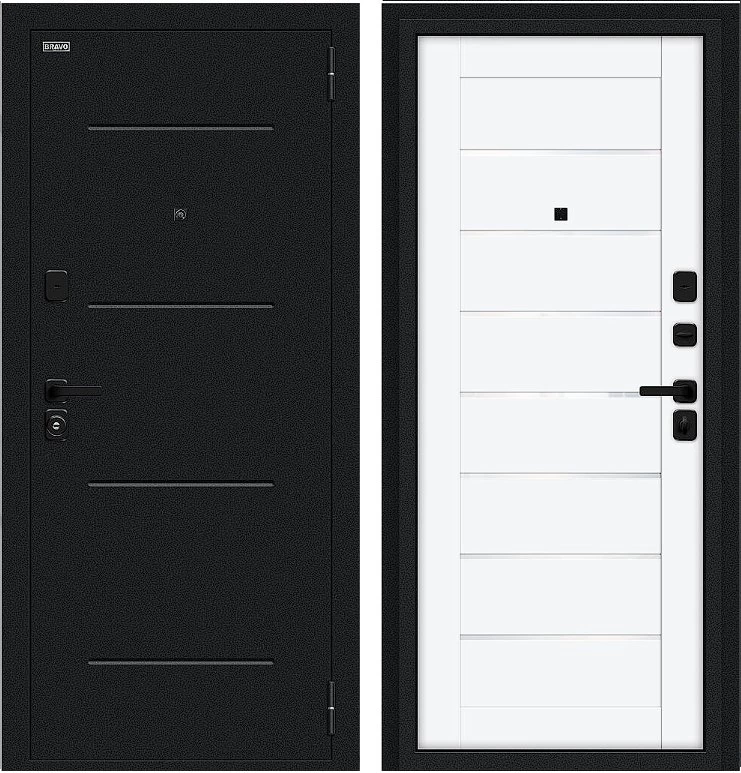 Надежная входная Дверь Браво Техно/SBlack Букле черное/White Silk премиум класса по цене 33 209 руб. Большая толщина стали защитит от проникновения в ваш дом, квартиру или коттедж. Используется очень качественная фурнитура: замки, цилиндры, ручки, защелки. Покрытие и отделка двери изготовлено под внимательным контролем производителя. Дверь имеет долгий срок службы и гарантию.
