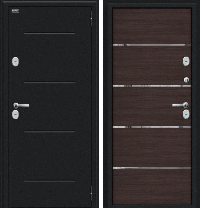 Надежная входная Дверь Браво Thermo Лайн Букле черное/Wenge Veralinga премиум класса по цене 47 609 руб. Большая толщина стали защитит от проникновения в ваш дом, квартиру или коттедж. Используется очень качественная фурнитура: замки, цилиндры, ручки, защелки. Покрытие и отделка двери изготовлено под внимательным контролем производителя. Дверь имеет долгий срок службы и гарантию.