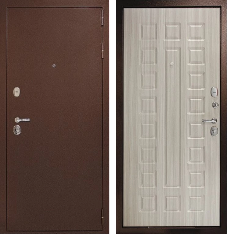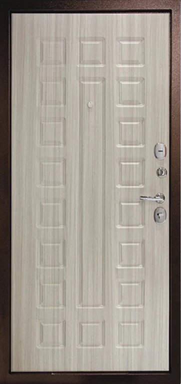Надежная входная Дверь Рубикон 1 Медь Сандал белый премиум класса по цене 32 579 руб. Большая толщина стали защитит от проникновения в ваш дом, квартиру или коттедж. Используется очень качественная фурнитура: замки, цилиндры, ручки, защелки. Покрытие и отделка двери изготовлено под внимательным контролем производителя. Дверь имеет долгий срок службы и гарантию.