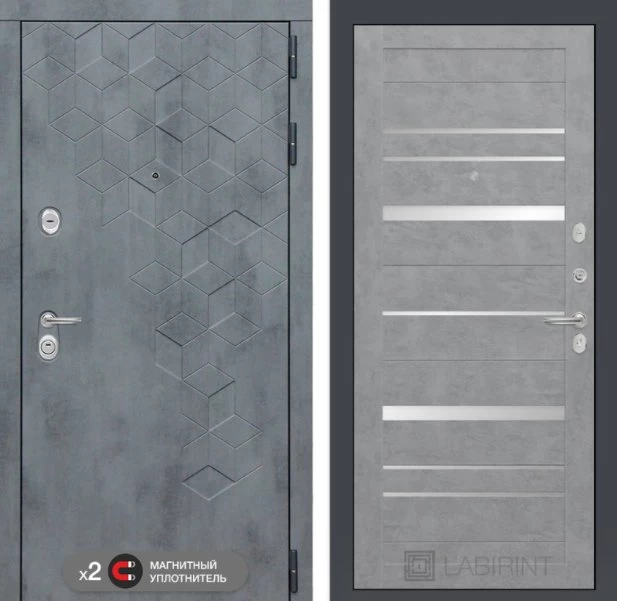 Дизайнерская входная Дверь Бетон класса Люкс с несколькими листами стали, звукоизоляцией и теплоизоляцией. Утепленный короб и полотно защитят от сквозняков и шумов. Модель не только надежная, комфортная, защищенная и высочайшего качества, но и очень красивая! Будет отлично сочетаться с интерьером дома, квартиры или офиса. Сейчас действует выгодное предложение по цене: 53 859 руб.