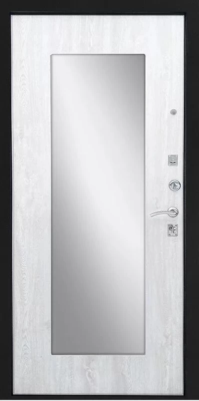 Надежная входная Дверь Ратибор Люкс Зеркало Черное серебро/Сосна белая премиум класса по цене 30 859 руб. Большая толщина стали защитит от проникновения в ваш дом, квартиру или коттедж. Используется очень качественная фурнитура: замки, цилиндры, ручки, защелки. Покрытие и отделка двери изготовлено под внимательным контролем производителя. Дверь имеет долгий срок службы и гарантию.