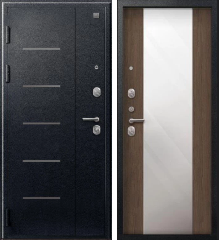 Надежная входная Дверь V-04 Черный муар - Миндаль Зеркало премиум класса по цене 42 359 руб. Большая толщина стали защитит от проникновения в ваш дом, квартиру или коттедж. Используется очень качественная фурнитура: замки, цилиндры, ручки, защелки. Покрытие и отделка двери изготовлено под внимательным контролем производителя. Дверь имеет долгий срок службы и гарантию.