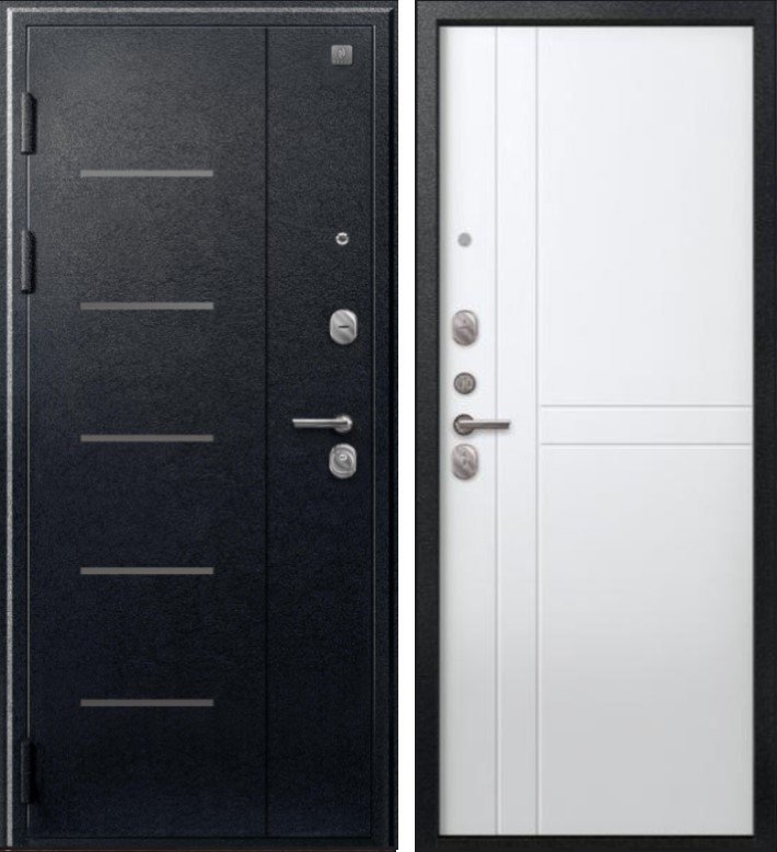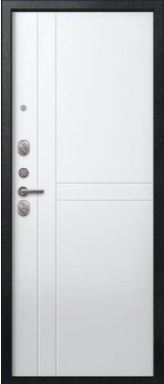 Надежная входная Дверь V-06 Черный муар - Белый премиум класса по цене 38 609 руб. Большая толщина стали защитит от проникновения в ваш дом, квартиру или коттедж. Используется очень качественная фурнитура: замки, цилиндры, ручки, защелки. Покрытие и отделка двери изготовлено под внимательным контролем производителя. Дверь имеет долгий срок службы и гарантию.