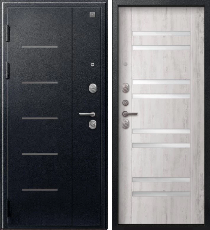 Надежная входная Дверь V-07 Черный муар - Дуб пепельный премиум класса по цене 41 759 руб. Большая толщина стали защитит от проникновения в ваш дом, квартиру или коттедж. Используется очень качественная фурнитура: замки, цилиндры, ручки, защелки. Покрытие и отделка двери изготовлено под внимательным контролем производителя. Дверь имеет долгий срок службы и гарантию.